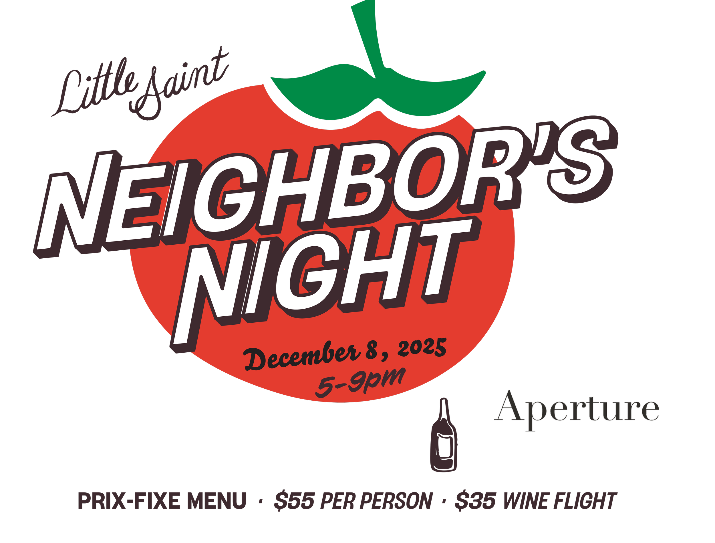 Each Neighbor’s Night features a wine partner, whose team will be on-site to pour, share stories, and connect with guests. Our December Neighbor’s Night spotlights Aperture Cellars, founded by acclaimed winemaker Jesse Katz, 2025 Wine Enthusiast Winemaker of the Year. Taste their Chenin Blanc, Sauvignon Blanc, and Red Blend through a $35 three-glass wine flight, available during dinner and all month.